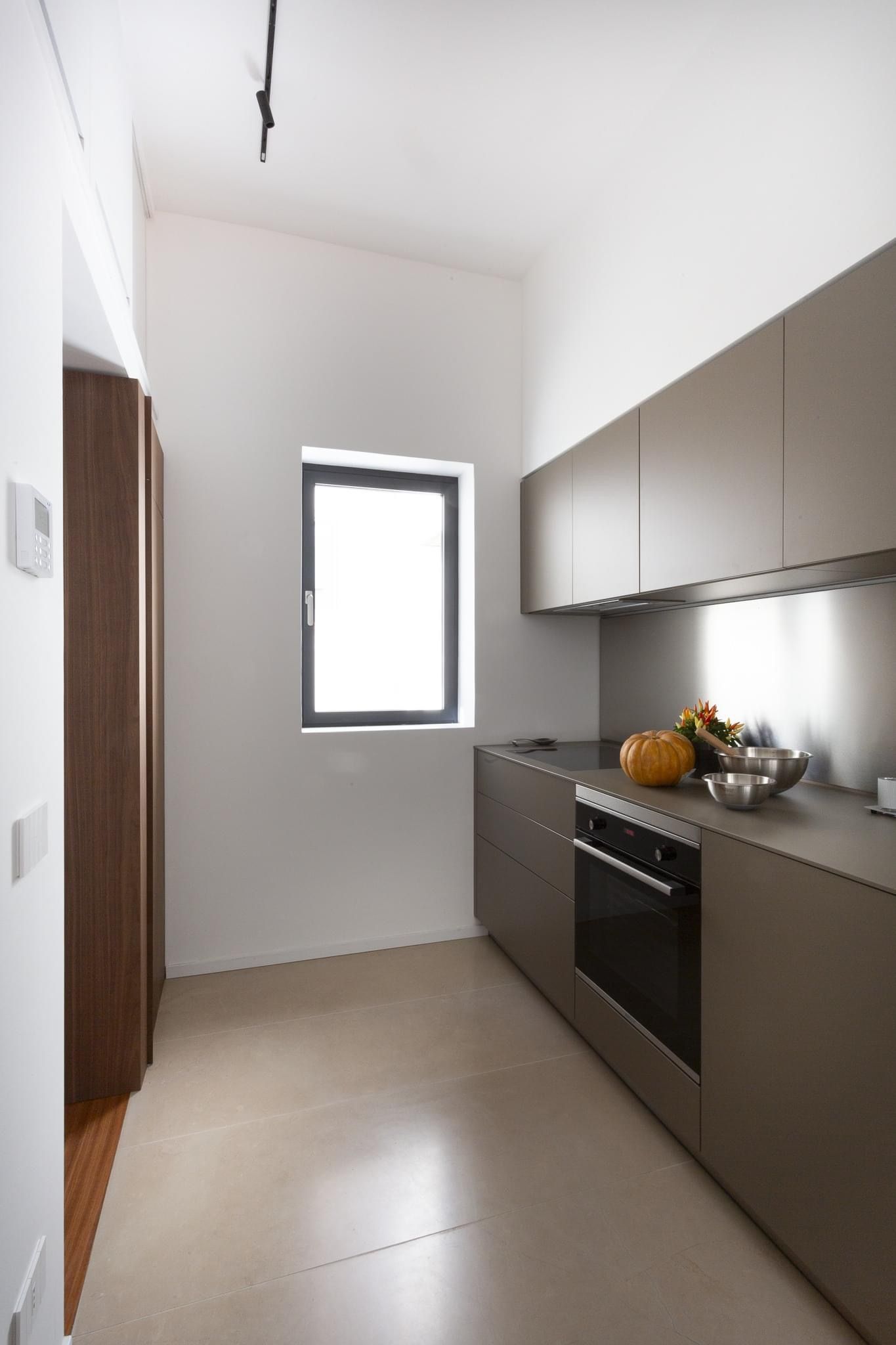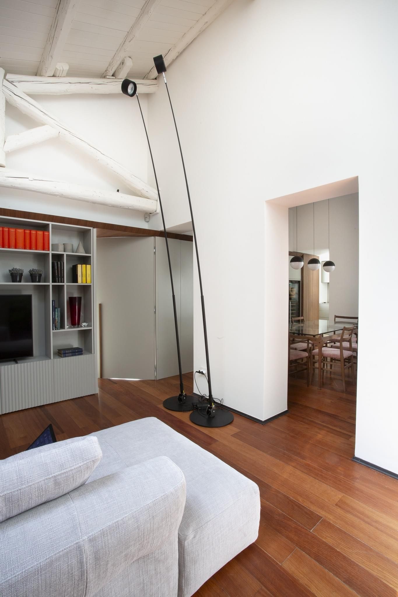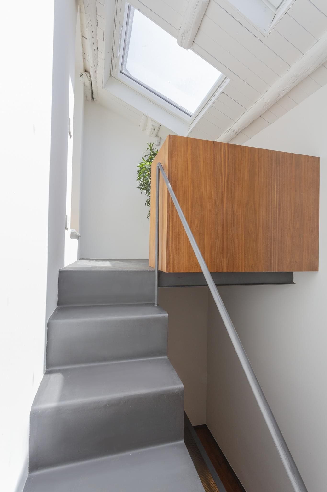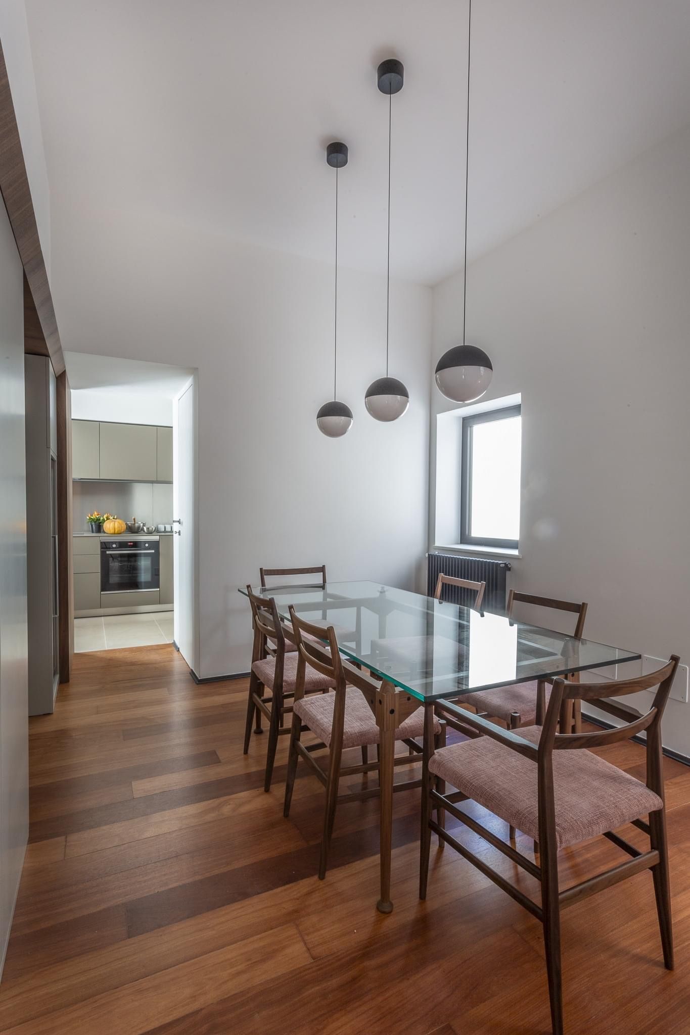 Questo piccolo attico è stato pensato come seconda casa per una coppia di giovani clienti che non risiedono stabilmente in città. Il progetto ha previsto una nuova distribuzione degli spazi interni valorizzando la zona giorno e riorganizzando la zona notte e la posizione dei servizi igienici.