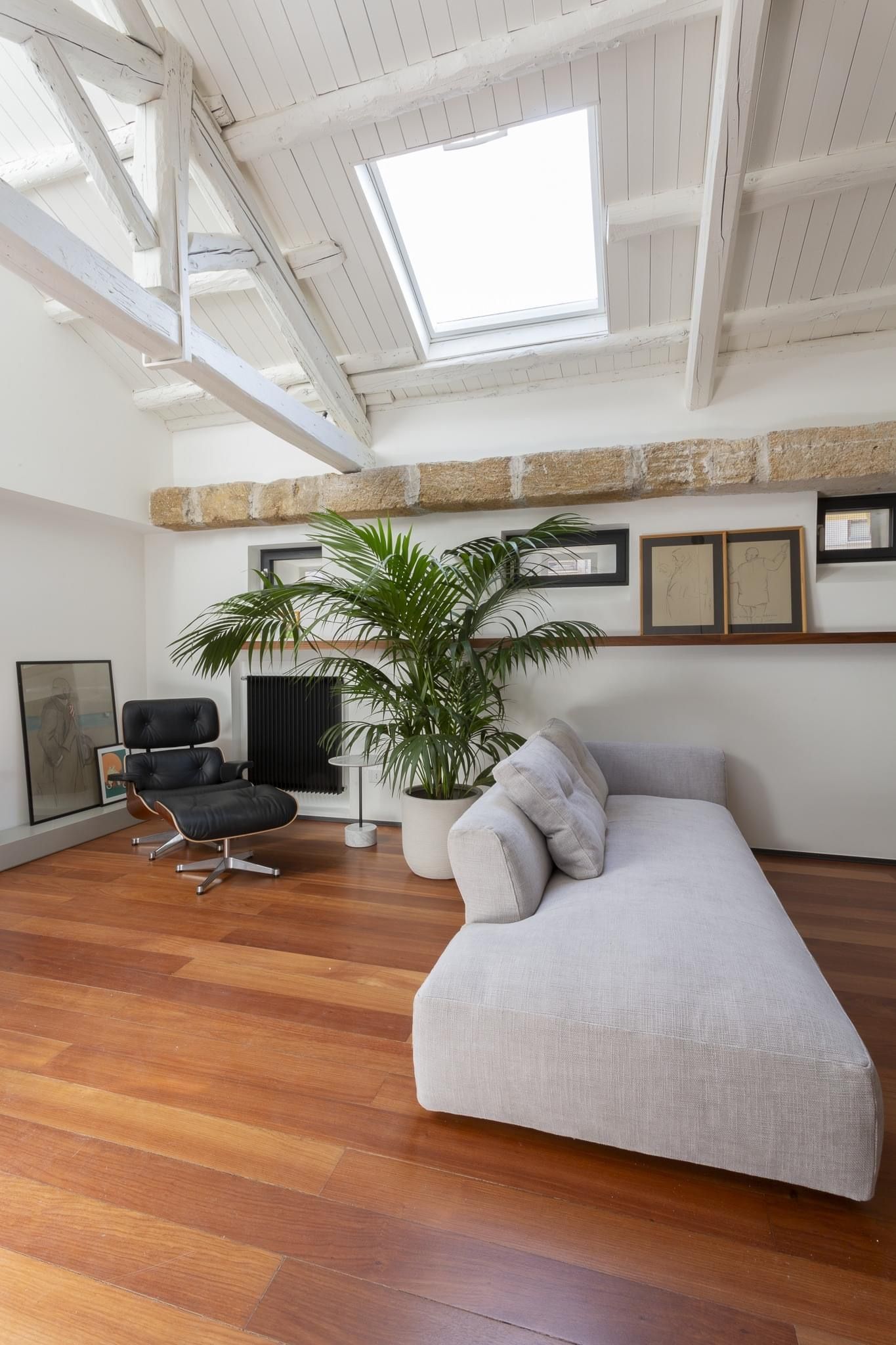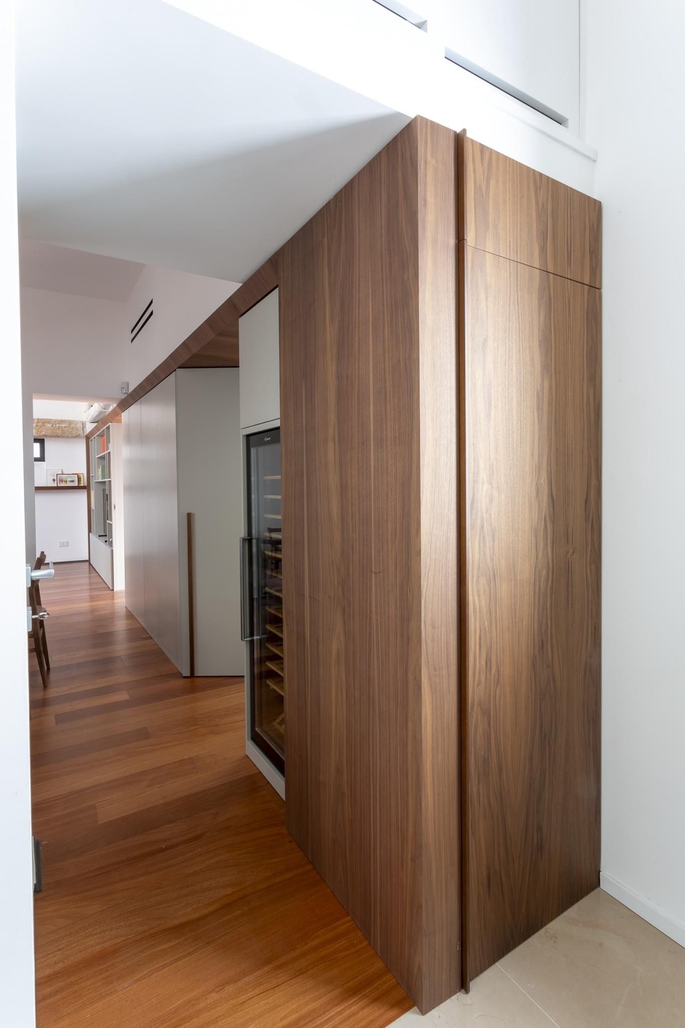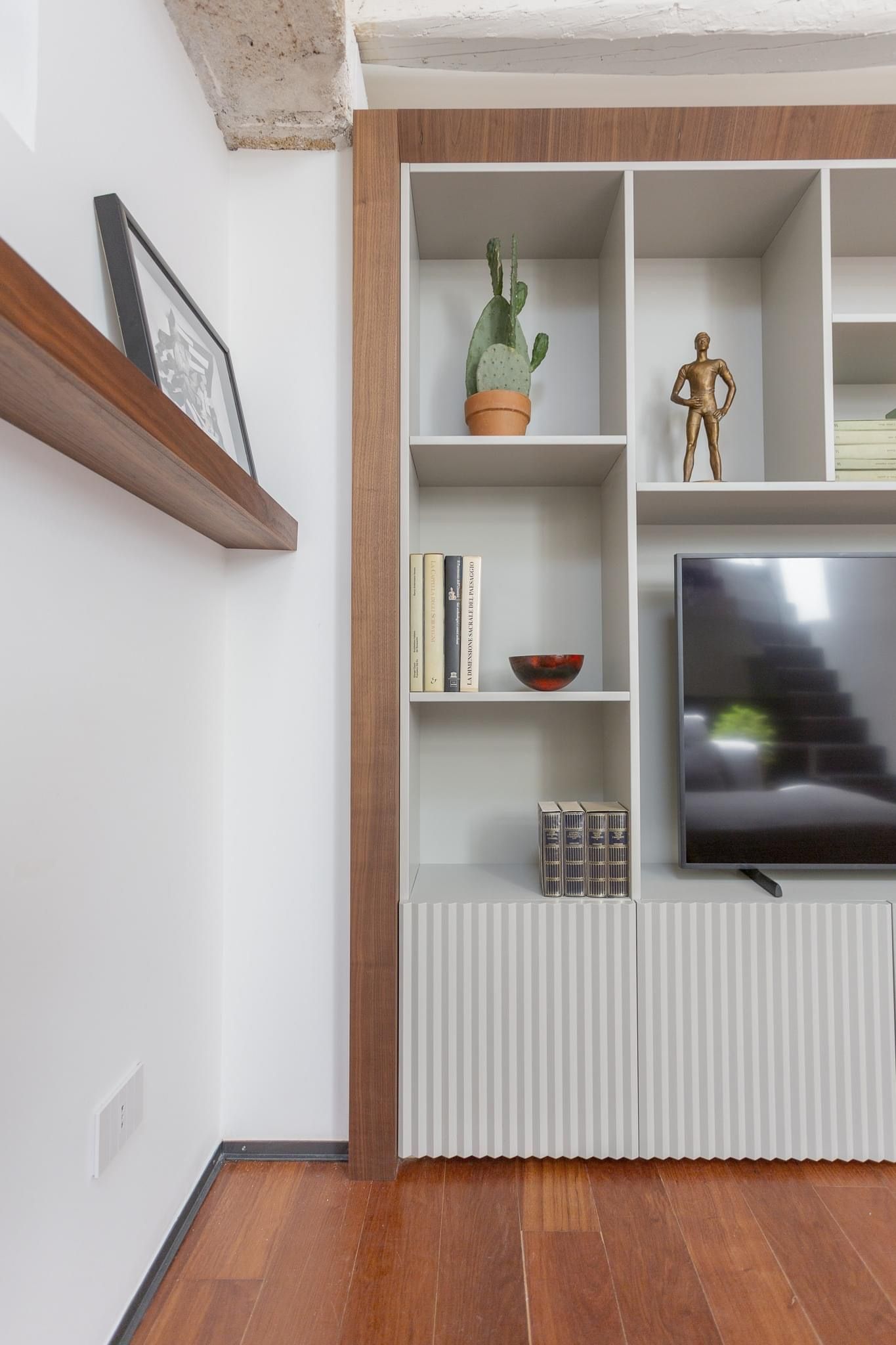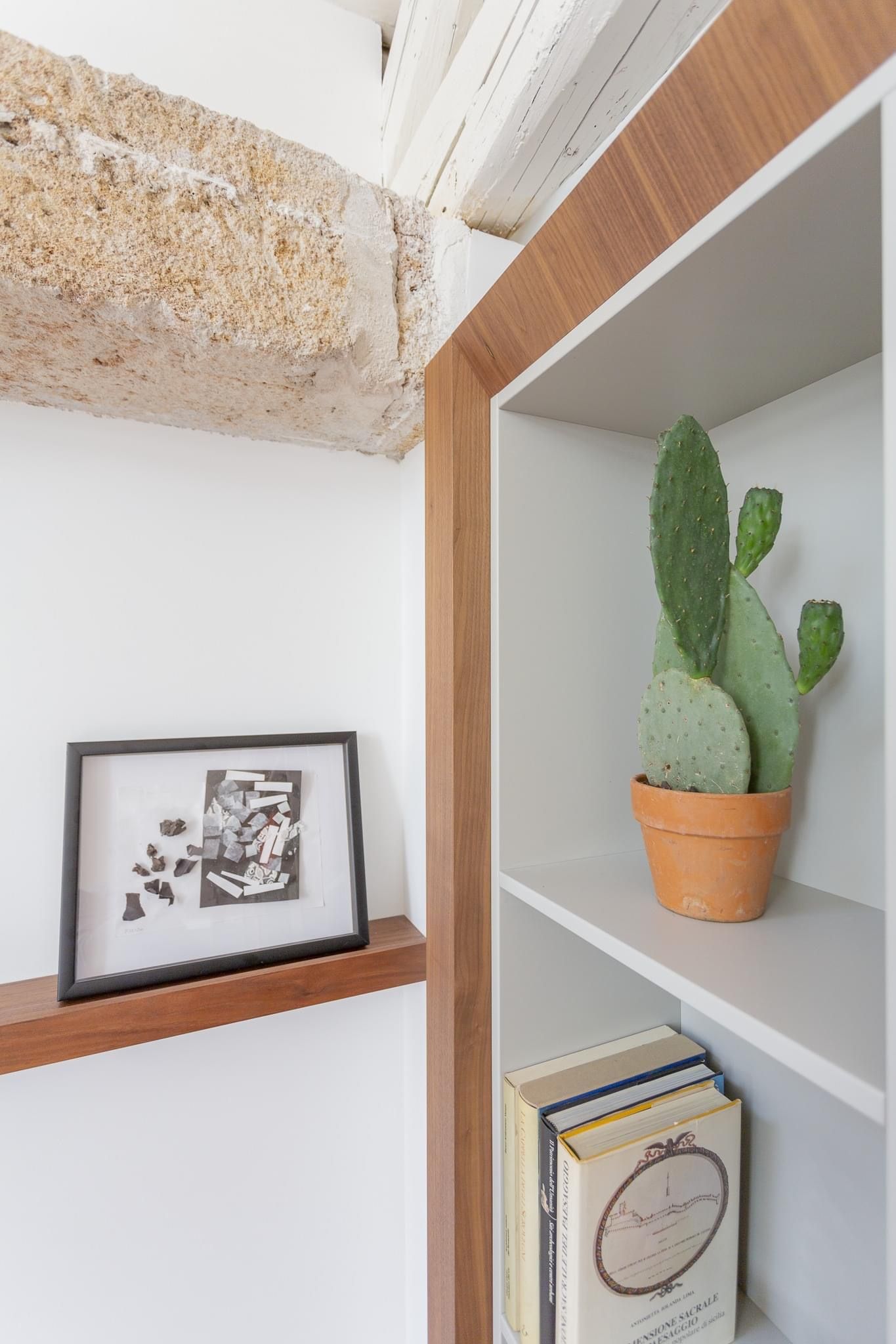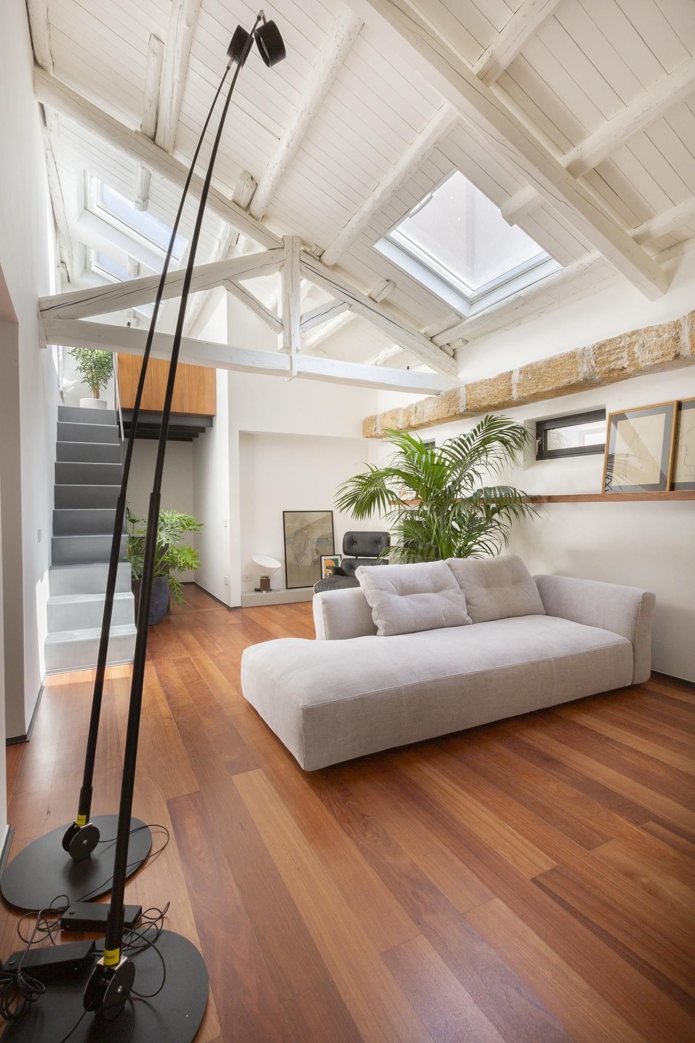 Questo piccolo attico è stato pensato come seconda casa per una coppia di giovani clienti che non risiedono stabilmente in città. Il progetto ha previsto una nuova distribuzione degli spazi interni valorizzando la zona giorno e riorganizzando la zona notte e la posizione dei servizi igienici.
