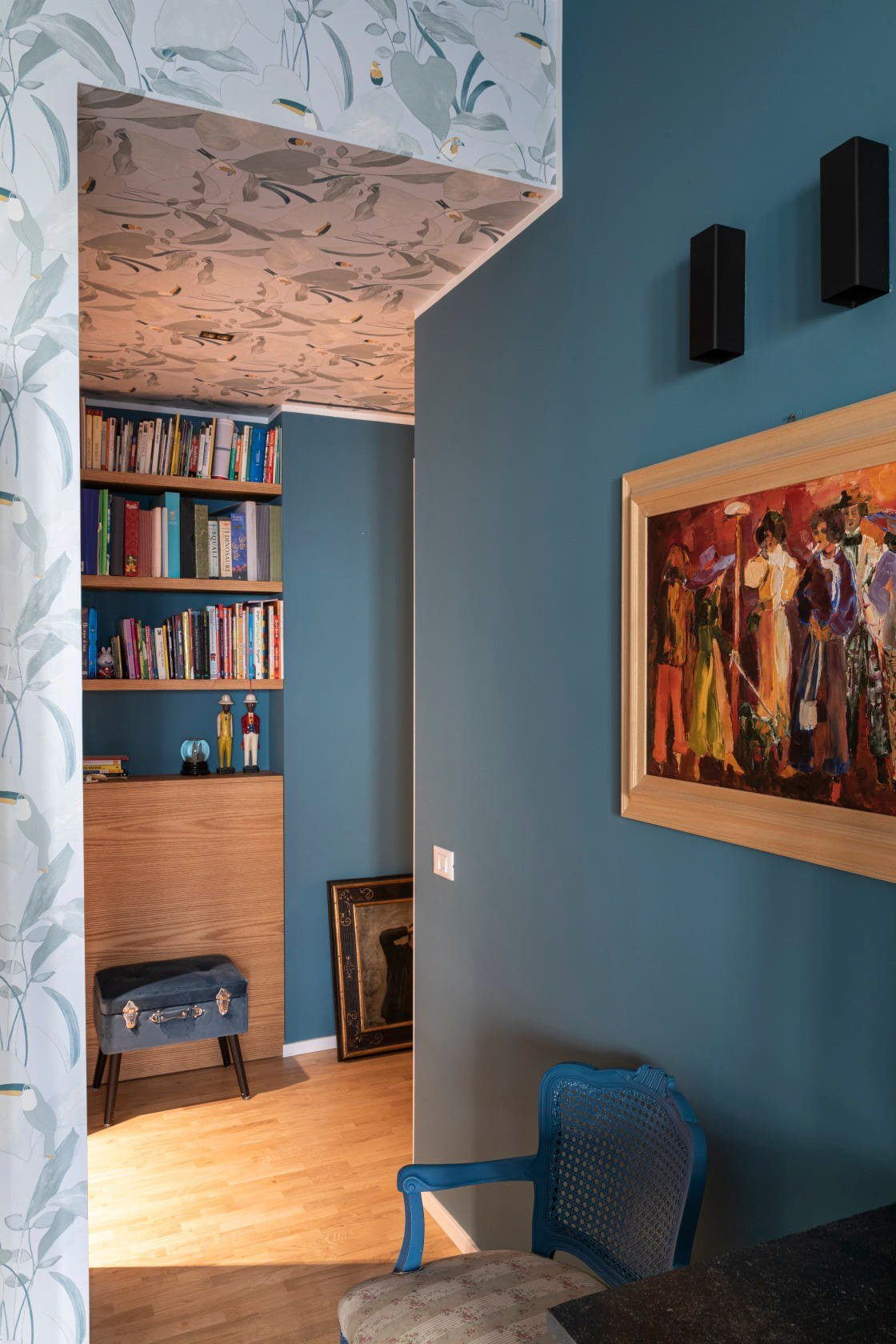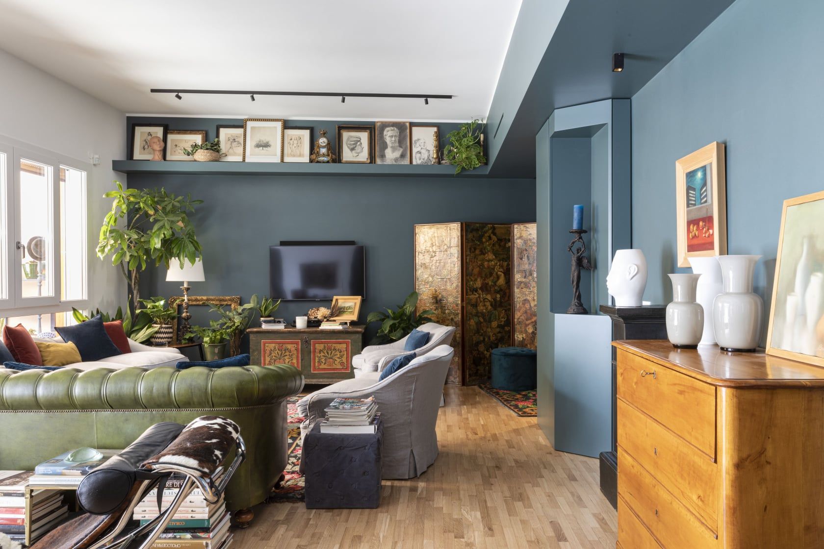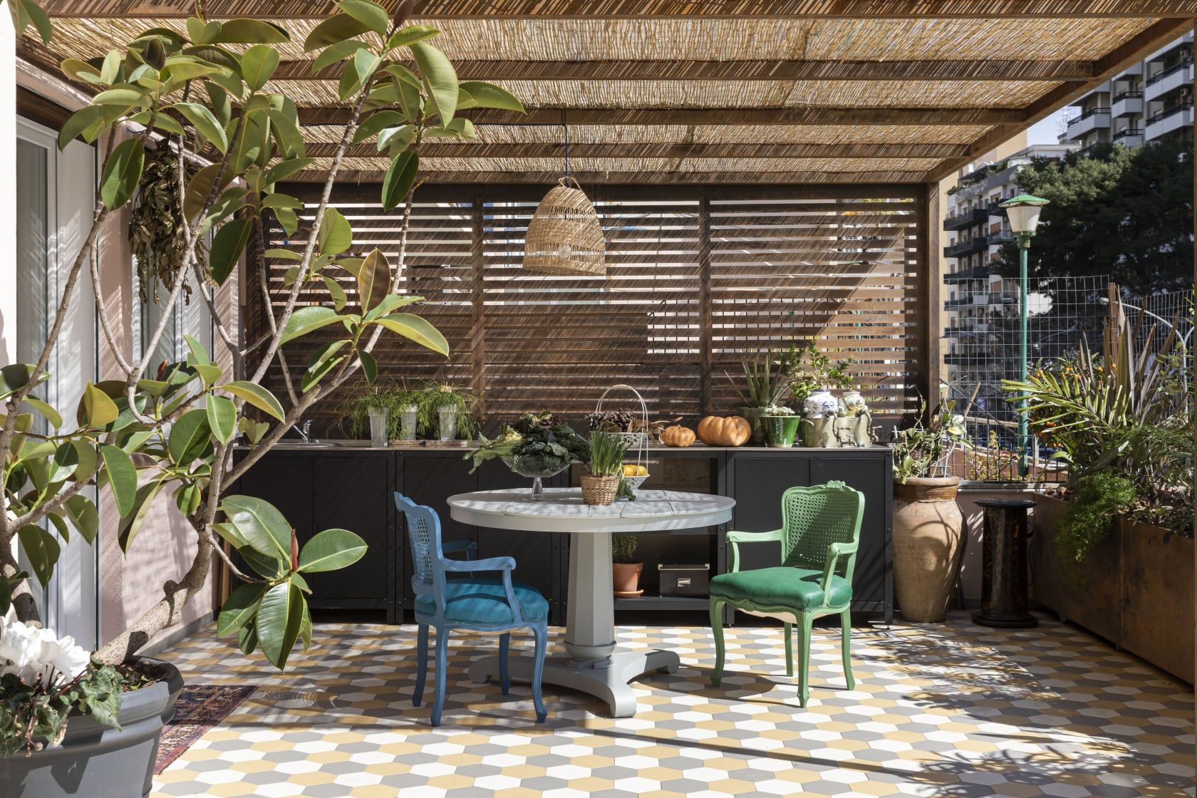 Questo appartamento a Palermo sembra perseguire, nelle soluzioni di arredo questa seconda raccomandazione. L’appartamento è stato oggetto di una complessiva rimodulazione della originaria distribuzione interna, modificando, in primis, la posizione della cucina spostata in continuità con il soggiorno e posta in adiacenza alla grande terrazza, che è stata trattata come la stanza più ampia della casa: una stanza senza tetto da vivere quotidianamente (pioggia permettendo). Tutte le scelte sono state orientate ad accogliere la personalità dei committenti colti e curiosi collezionisti grazie ai quali ciascuna stanza di questa casa diviene una ricca wunderkammer.
