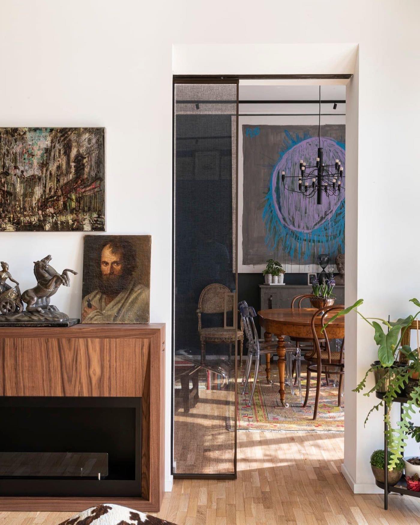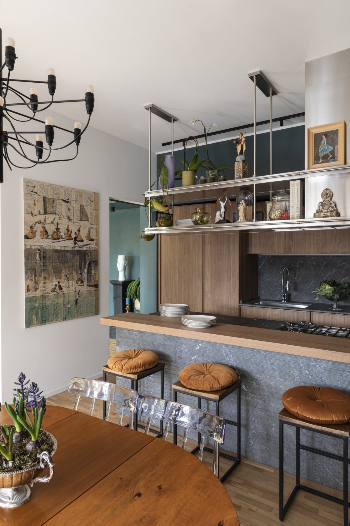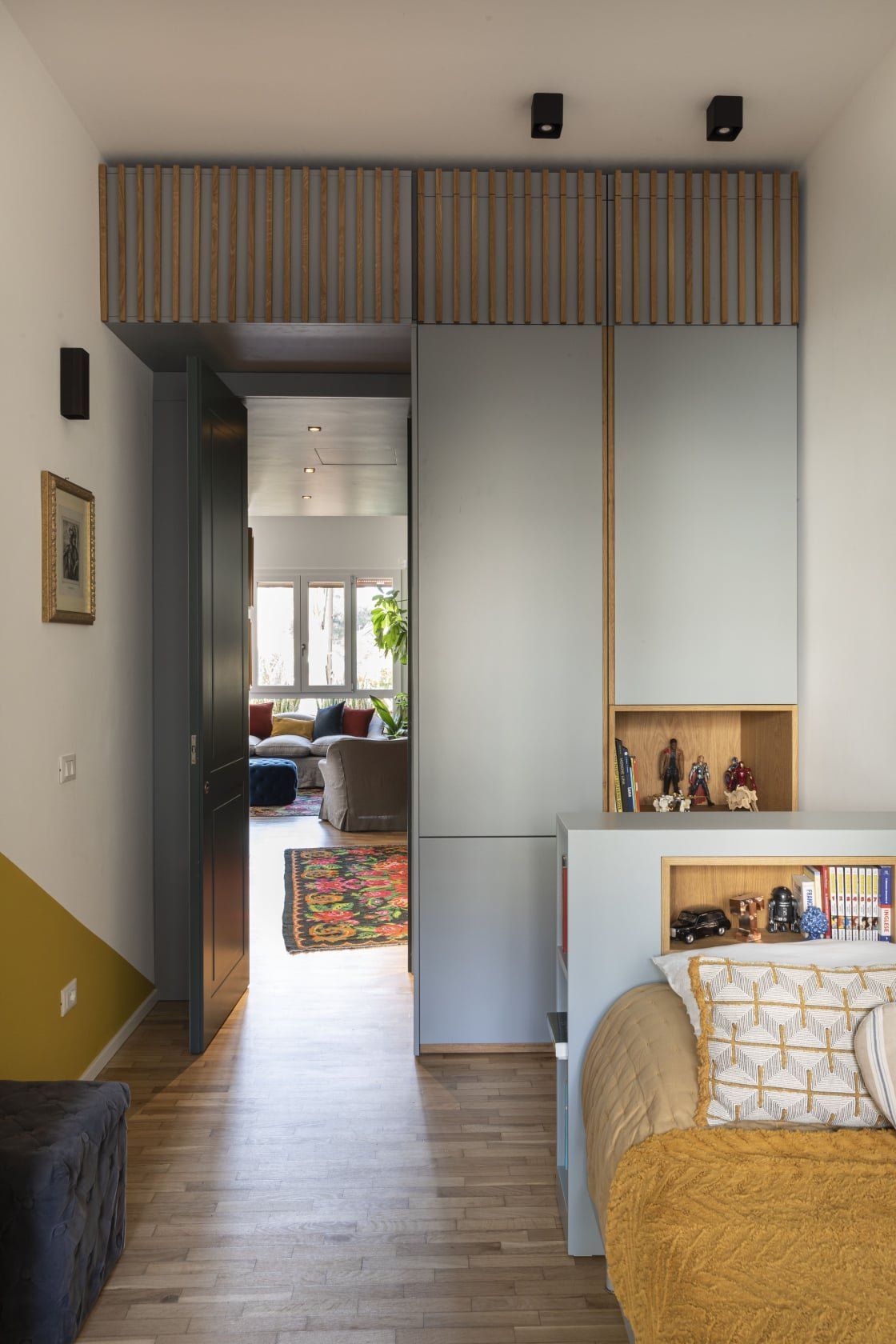 Questo appartamento a Palermo sembra perseguire, nelle soluzioni di arredo questa seconda raccomandazione. L’appartamento è stato oggetto di una complessiva rimodulazione della originaria distribuzione interna, modificando, in primis, la posizione della cucina spostata in continuità con il soggiorno e posta in adiacenza alla grande terrazza, che è stata trattata come la stanza più ampia della casa: una stanza senza tetto da vivere quotidianamente (pioggia permettendo). Tutte le scelte sono state orientate ad accogliere la personalità dei committenti colti e curiosi collezionisti grazie ai quali ciascuna stanza di questa casa diviene una ricca wunderkammer.