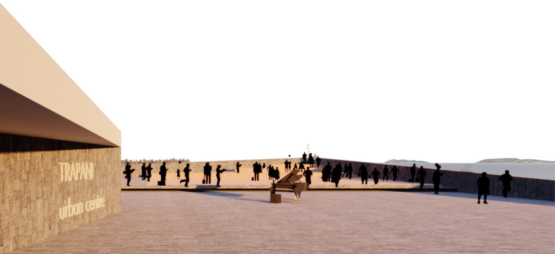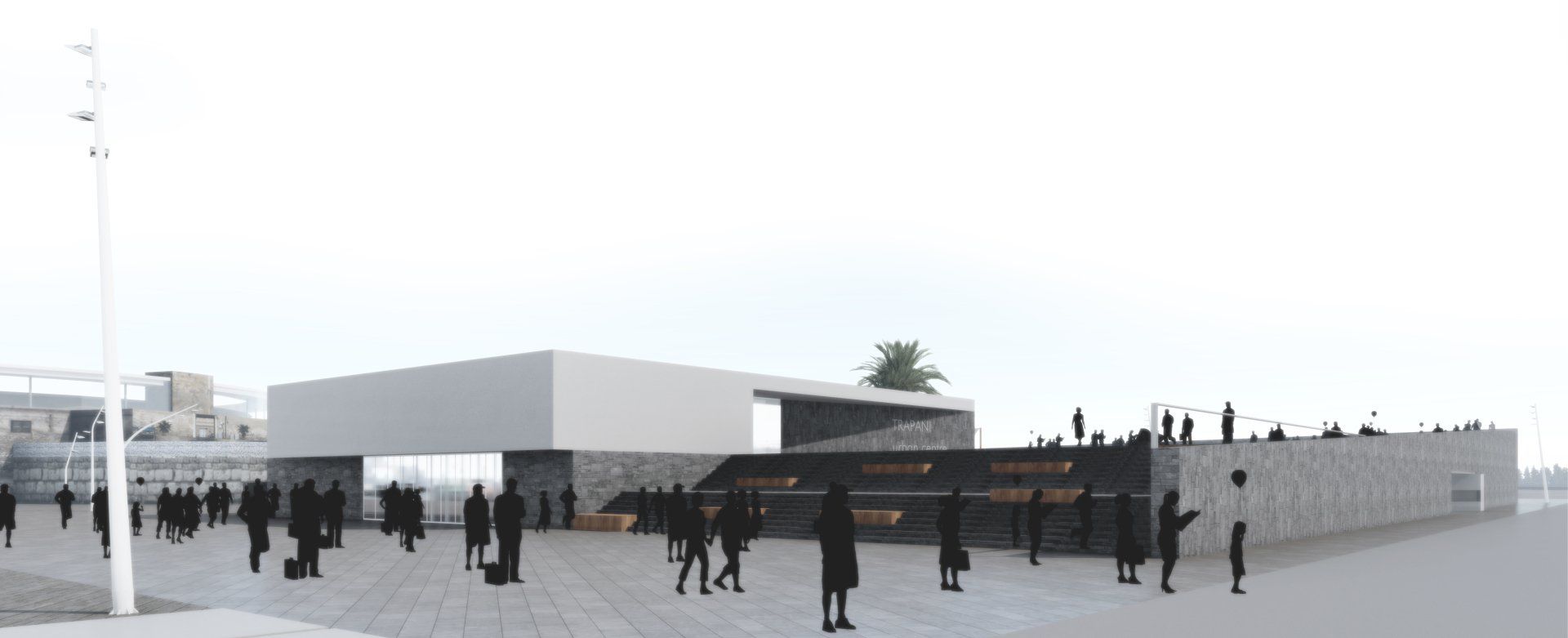 Il progetto di rigenerazione del waterfront di Trapani prende spunto dai desiderata del bando di concorso, proponendo una serie di soluzioni diversificate e tutte volte alla valorizzazione del rapporto di Trapani con il suo waterfront portuale. Spazi pubblici e mixitè delle funzioni allocate nei piccoli manufatti caratterizzano la proposta progettuale. L’area del Mercato del pesce è risolta con una grande copertura che come una grande chiglia offre protezione dal sole alle bancarelle del pesce. Il Molo a “T” su cui sorge la stazione marittima è stato ridefinito in continuità con la maglia stradale e la Stazione è stata immaginata come parzialmente ipogea, affiancata, su un lato da un grande parco.