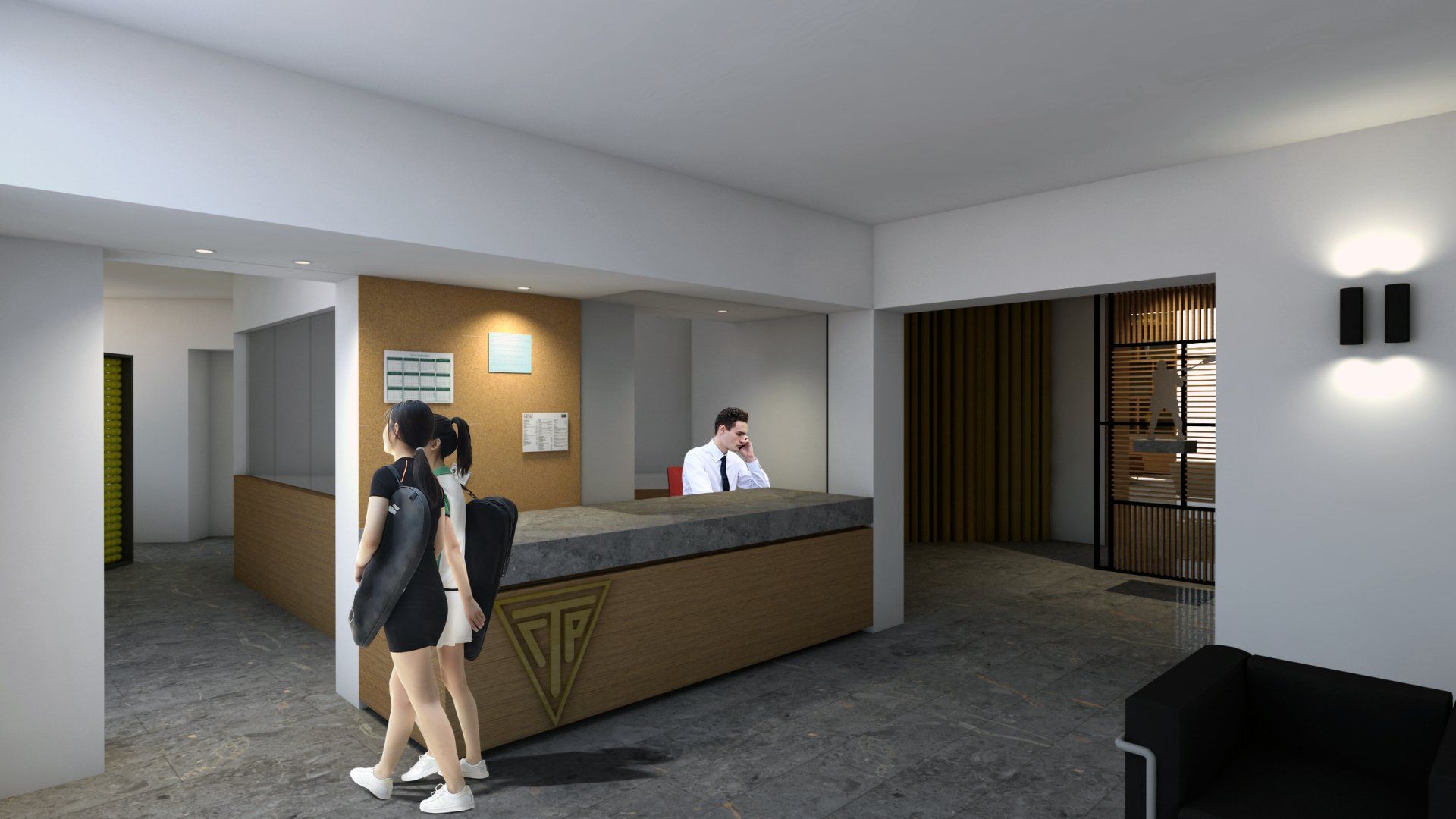 Il progetto interviene sull'ingresso riorganizzando la guardiola del portiere, sul vestibolo centrale esagonale nonchè sul bar e sul soggiorno, vero fulcro del progetto. Il grande spazio circolare è risolto attraverso un grande espositore dei trofei del circolo.