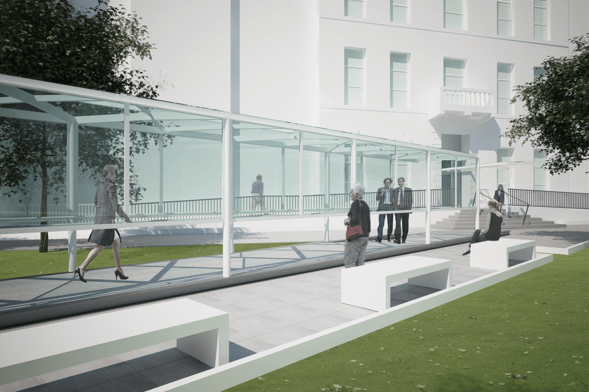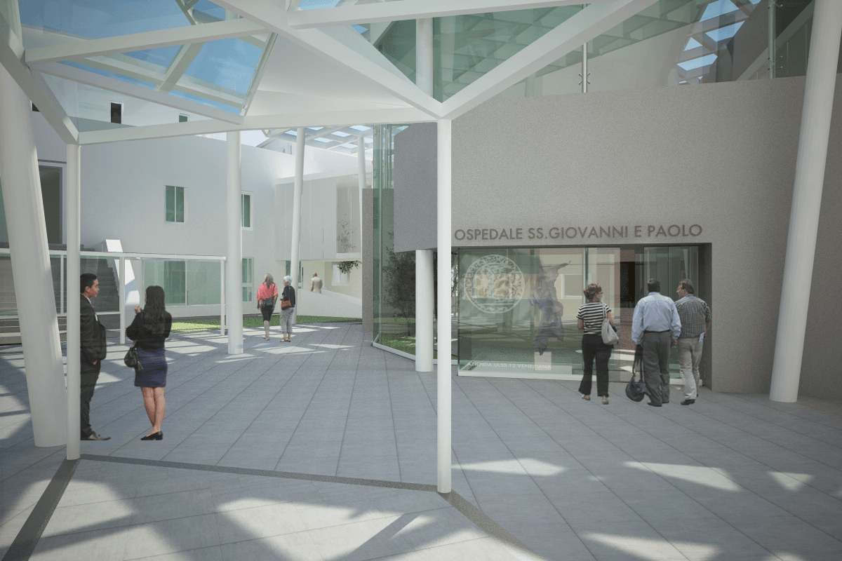 L’intervento ha previsto una totale ristrutturazione dei locali interni del padiglione ospedaliero, realizzato nella prima metà del secolo scorso, per ridistribuire i percorsi e gli ambienti interni, in ragione delle nuove esigenze sanitarie, adeguandolo anche alle vigenti normative antincendio. L’intervento ha anche interessato alcuni spazi esterni con la realizzazione di uno ambiente info-point nel cortile principale e il restauro dell'ingresso dalle Fondamenta Nove.