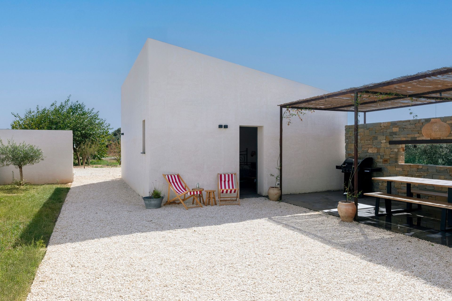 In questo progetto abbiamo cercato di lavorare sul tema del cortile inteso come elemento caratterizzante delle architetture rurali tradizionali della campagna siciliana. Qui il cortile connette il corpo principale della casa con quello, più contenuto, di una dependance che contiene una camera per ospiti e un piccolo magazzino.