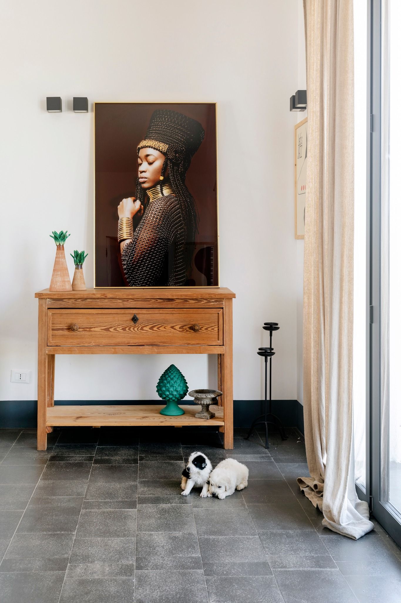 degli ulivi inquadrando le chiome degli alberi. La casa, estesa poco più di 80 mq, prevede un’organizzazione interna molto semplice. Un unico ambiente ospita il soggiorno, la cucina e spazi di servizio. Da questo ambiente si accede a due camere da letto entrambe dotate di un bagno.