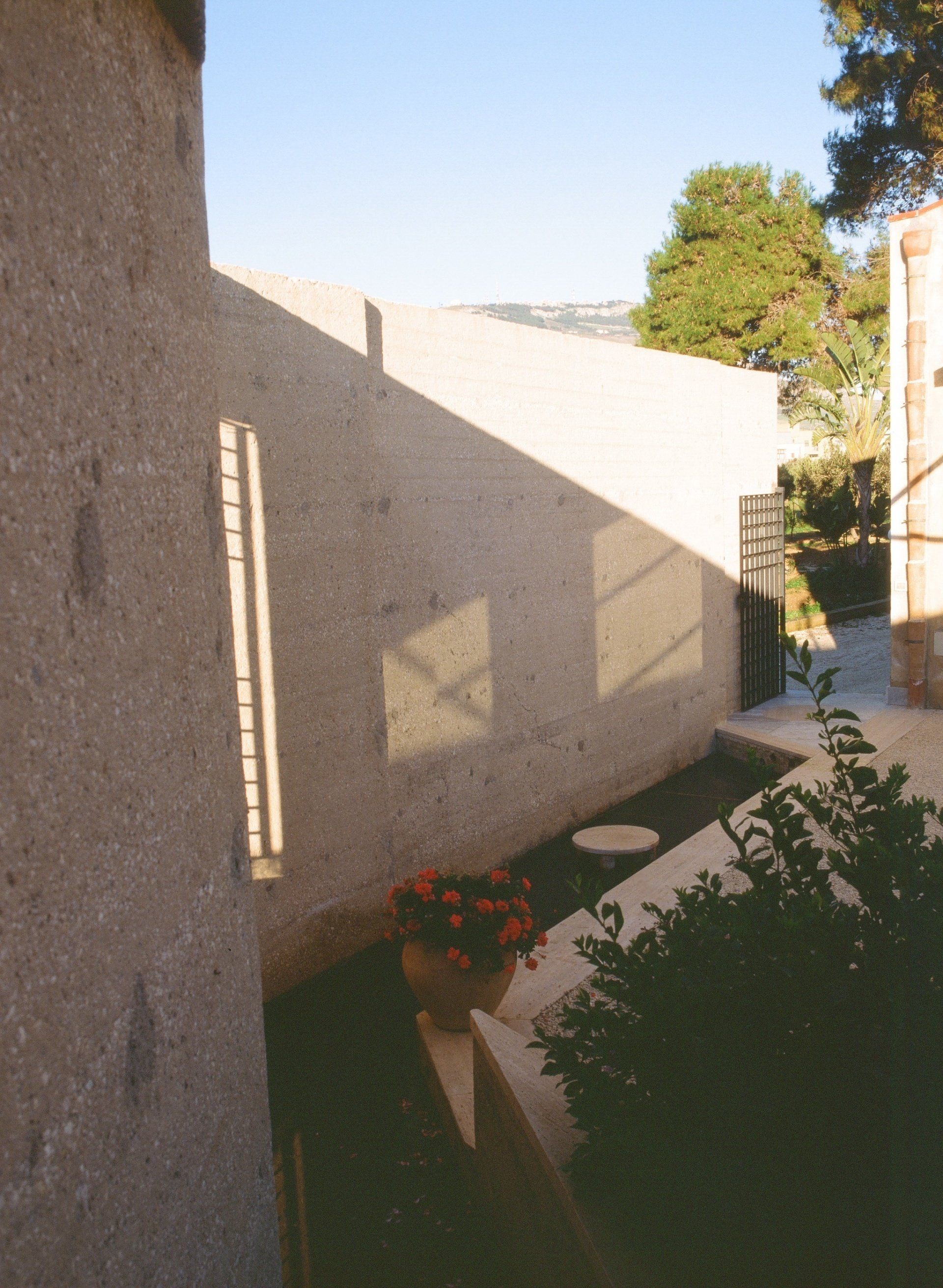 Il cotesto, prossimo alla periferia della città di Palermo ma ancora immerso nel verde della piana dei colli, suggerì la ricerca di un confronto più con il paesaggio interno e con quello più prossimo del giardino piuttosto che con quello di sfondo, che angoscioso mostrava l'avvicinarsi sempre più inarrestabile della città. L'impianto che si estende su un unico piano fuori terra, è caratterizzato da un sistema di patii e cortili che perseguono questa volontà di isolamento dal contesto e di ricerca di una dimensione raccolta e domestica.
