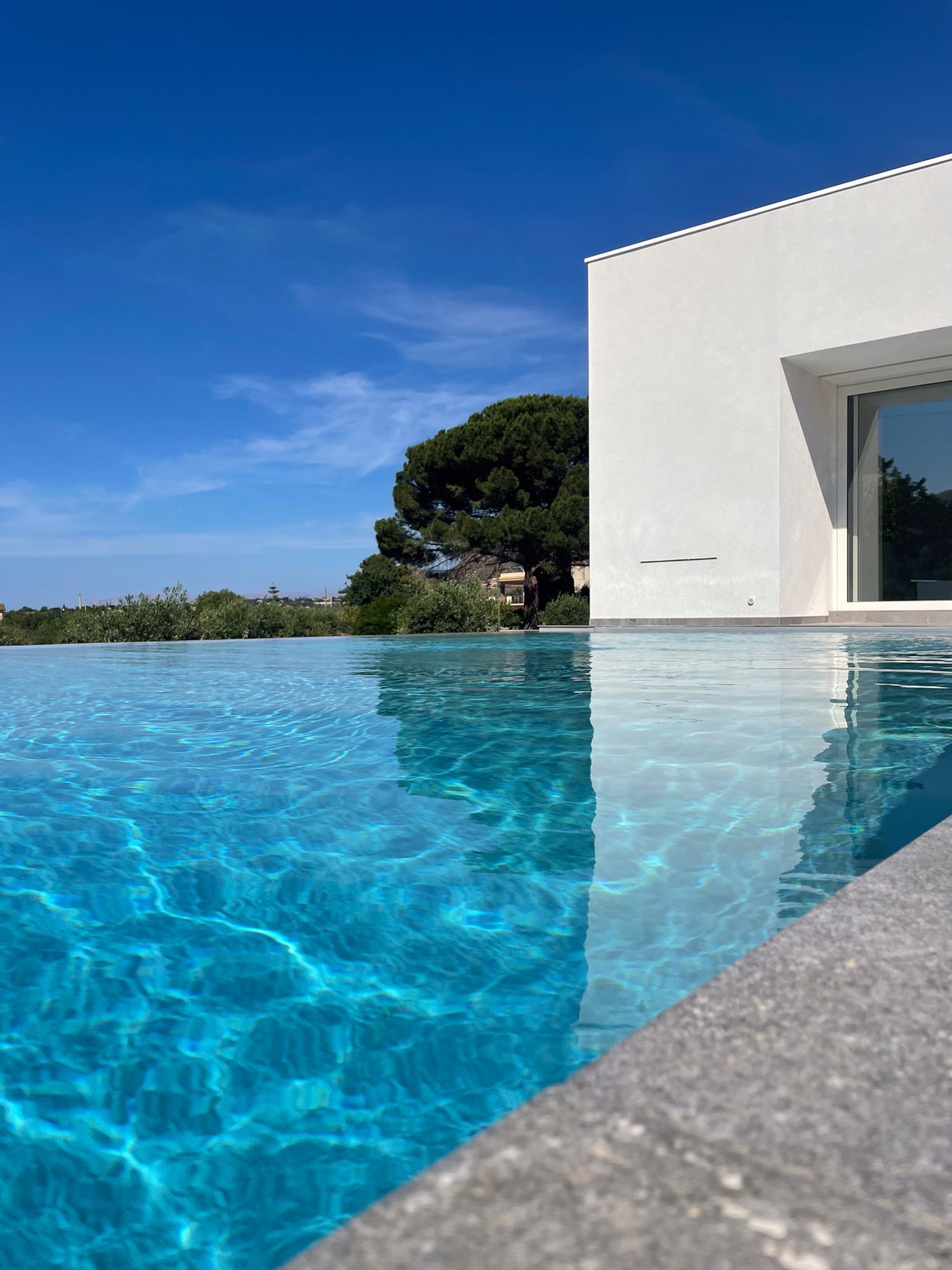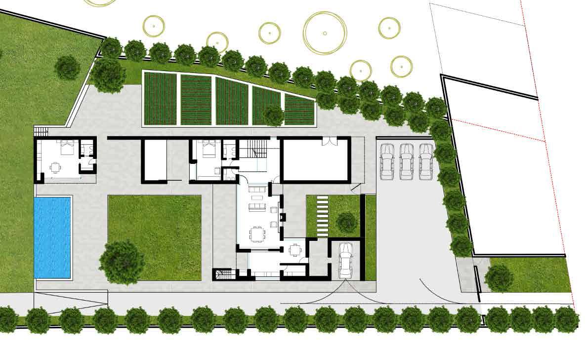 I volumi bianchi si confrontano con i colori cangianti della natura, dell’uliveto e della macchia mediterranea che caratterizzano il sito di progetto.