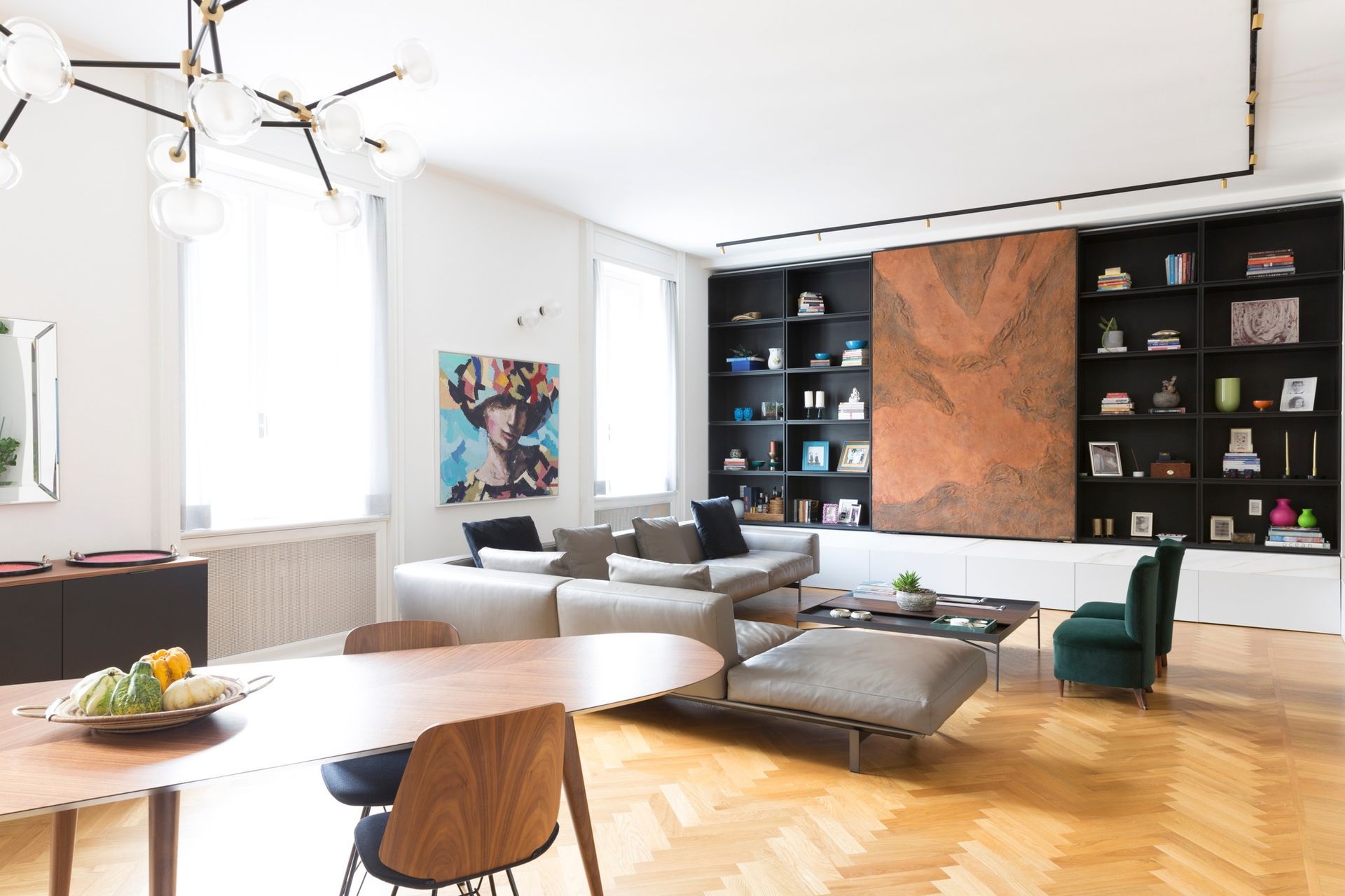 I committenti di questo progetto sono rientrati a Milano dopo anni trascorsi a Londra. Italiano di Palermo lui e Colombiana lei hanno deciso di rientrare in Italia per far crescere le loro figlie. La scelta di acquistare questo grande appartamento è una conseguenza della volontà di mettere radici stabili dopo anni trascorsi in giro per il mondo.