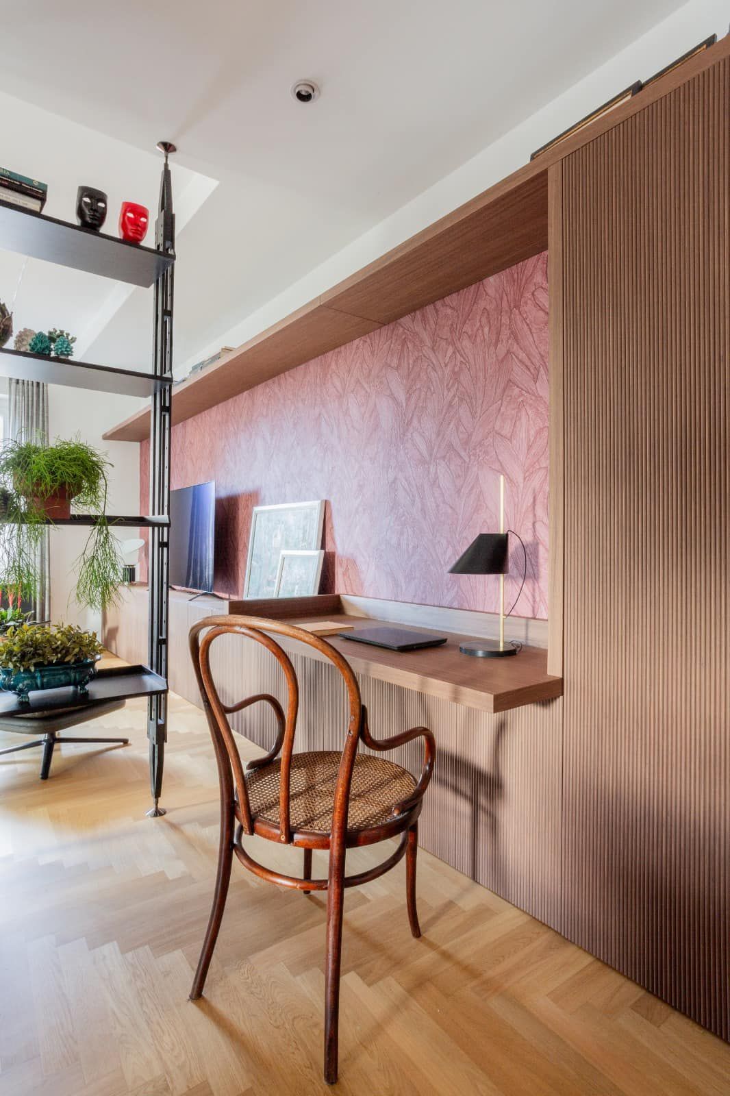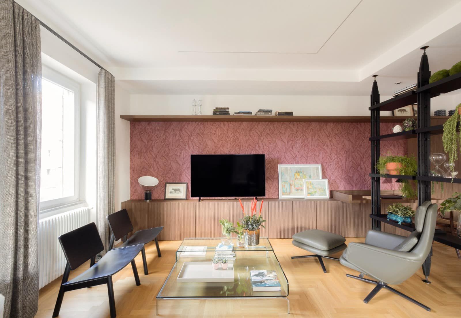 Questo intervento ha riguardato solo una parte di un grande appartamento recentemente rinnovato. I clienti lamentavano tuttavia alcune criticità legate alla distribuzione dell'arredamento del soggiorno e alla mancanza di uno spazio studio.