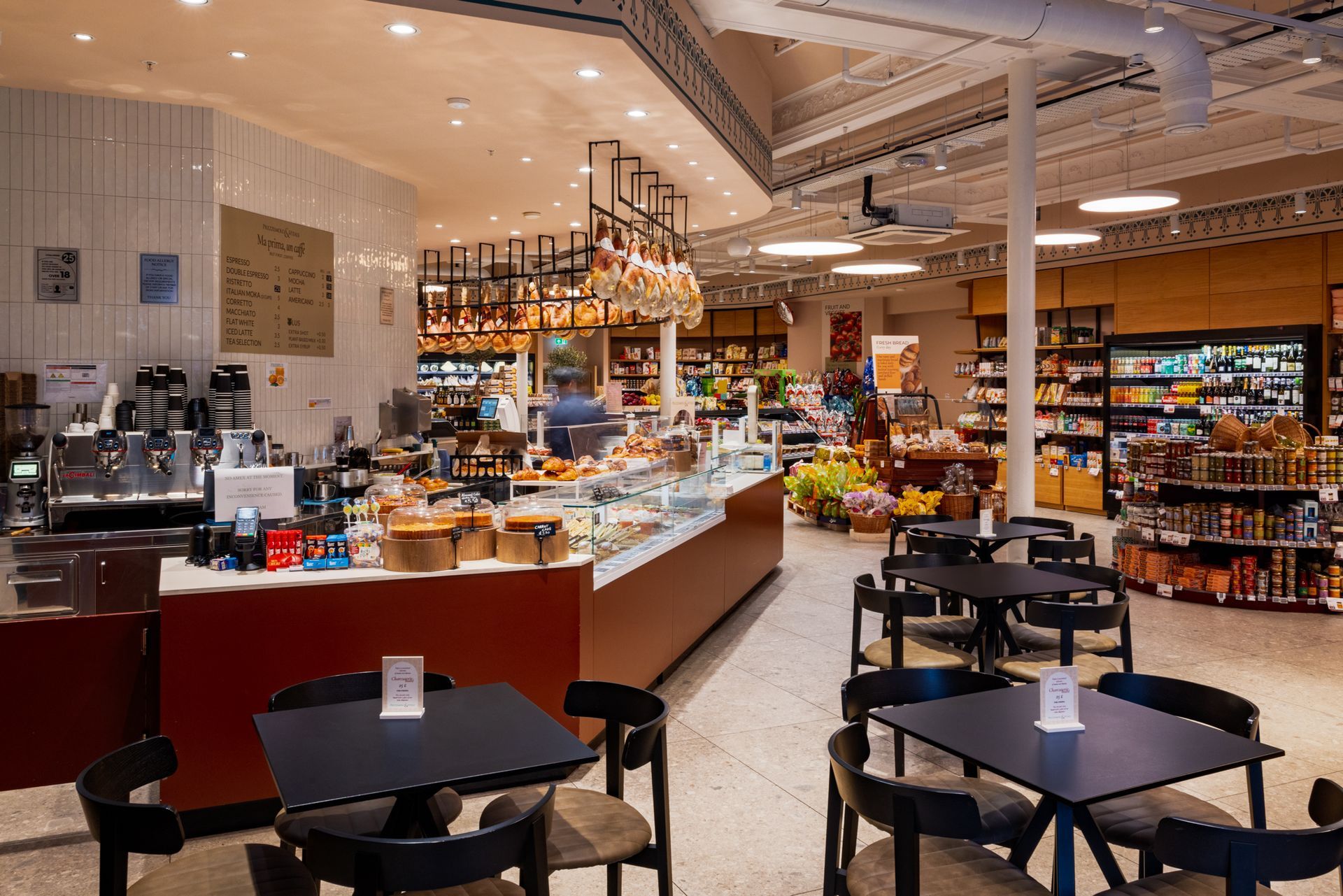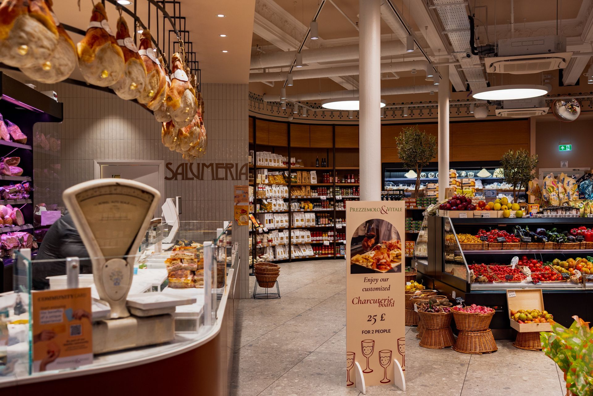 Il gruppo palermitano Prezzemolo & Vitale da anni ha aperto a Londra una serie di punti vendita. Questo di Clapham è il più grande e il progetto ha interessato una superficie di oltre 400 mq posti al piano terra dello storico store Arding&Hobbs.