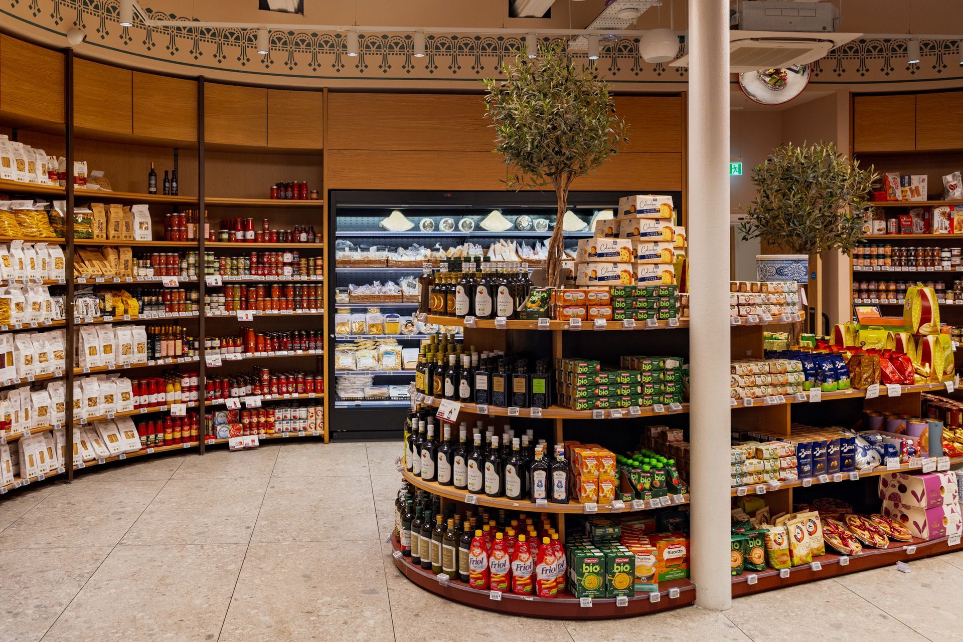 Il locale, caratterizzato da esili colonne in acciaio è stato totalmente ristrutturato adeguandolo alle esigenze di un supermercato di qualità. Il grande bancone salumeria e gastronomia occupa tutto il fronte sinistro del locale lasciando così libero il centro per l’esposizione dei prodotti da scaffale.