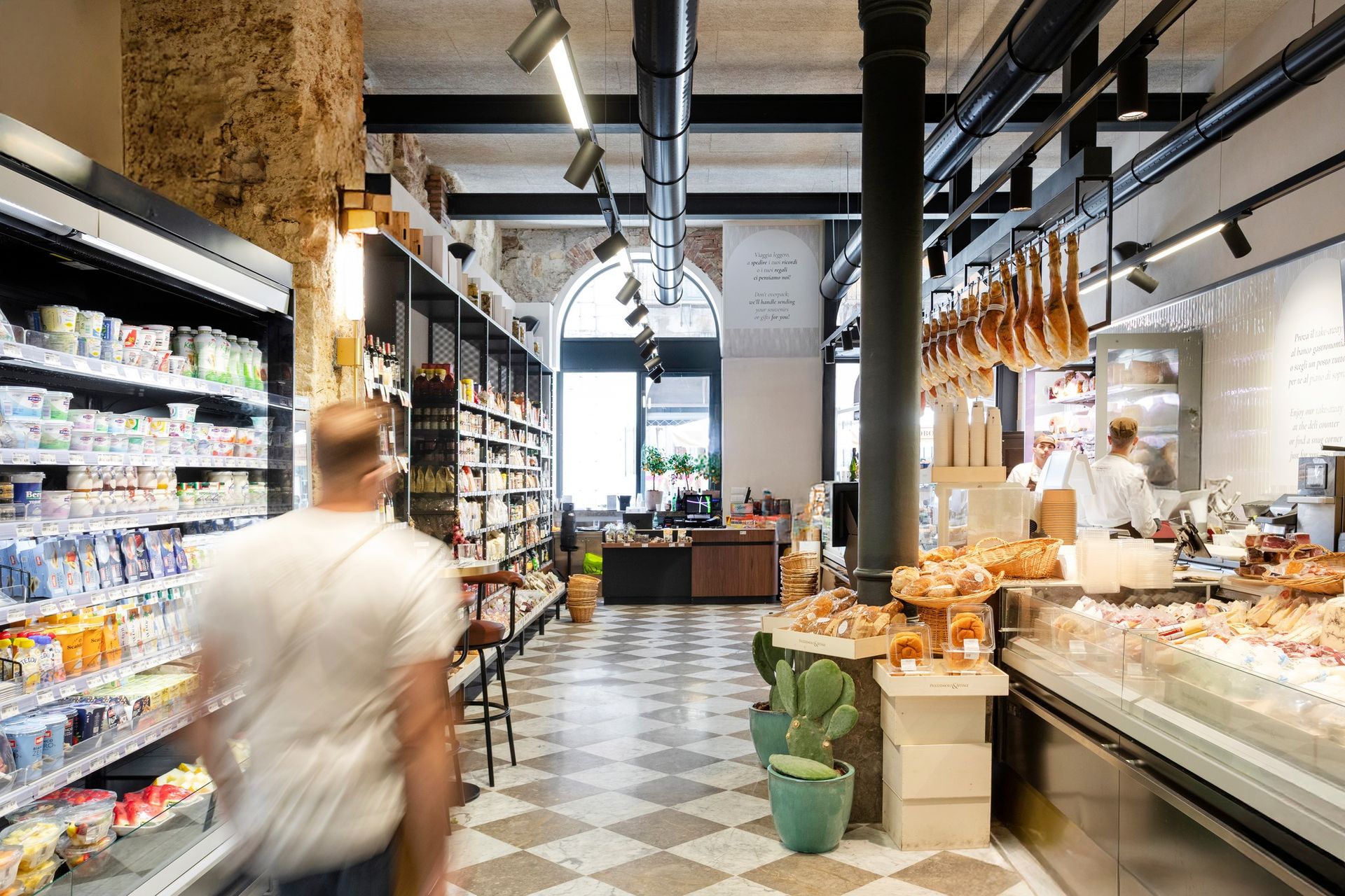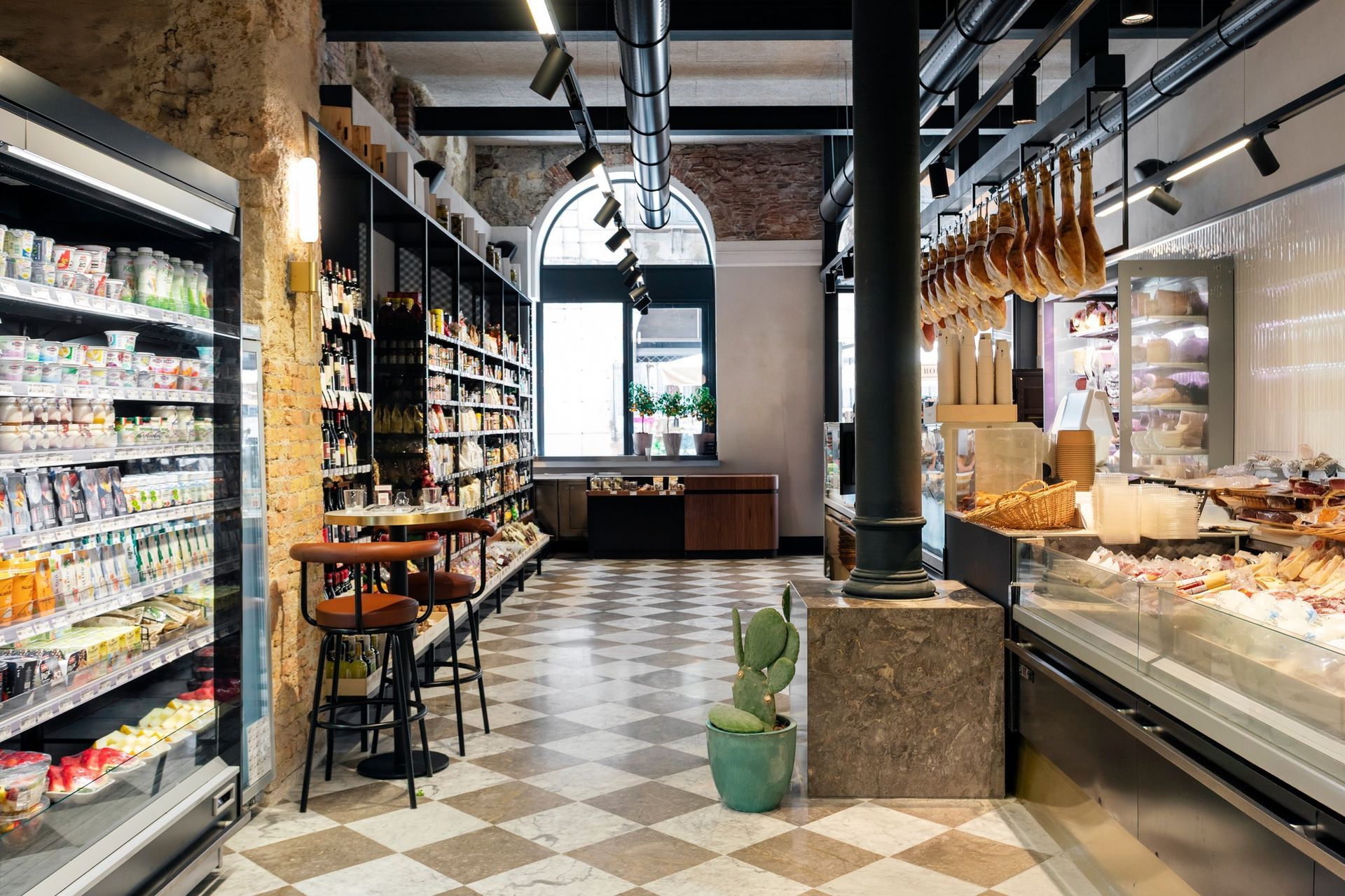 Il progetto di questo Retrobottega del gruppo Prezzemolo & Vitale ha interessato un magazzino di piano terra e ammezzato dello storico Palazzo Di Napoli nei pressi dei Quattro Canti di Città.