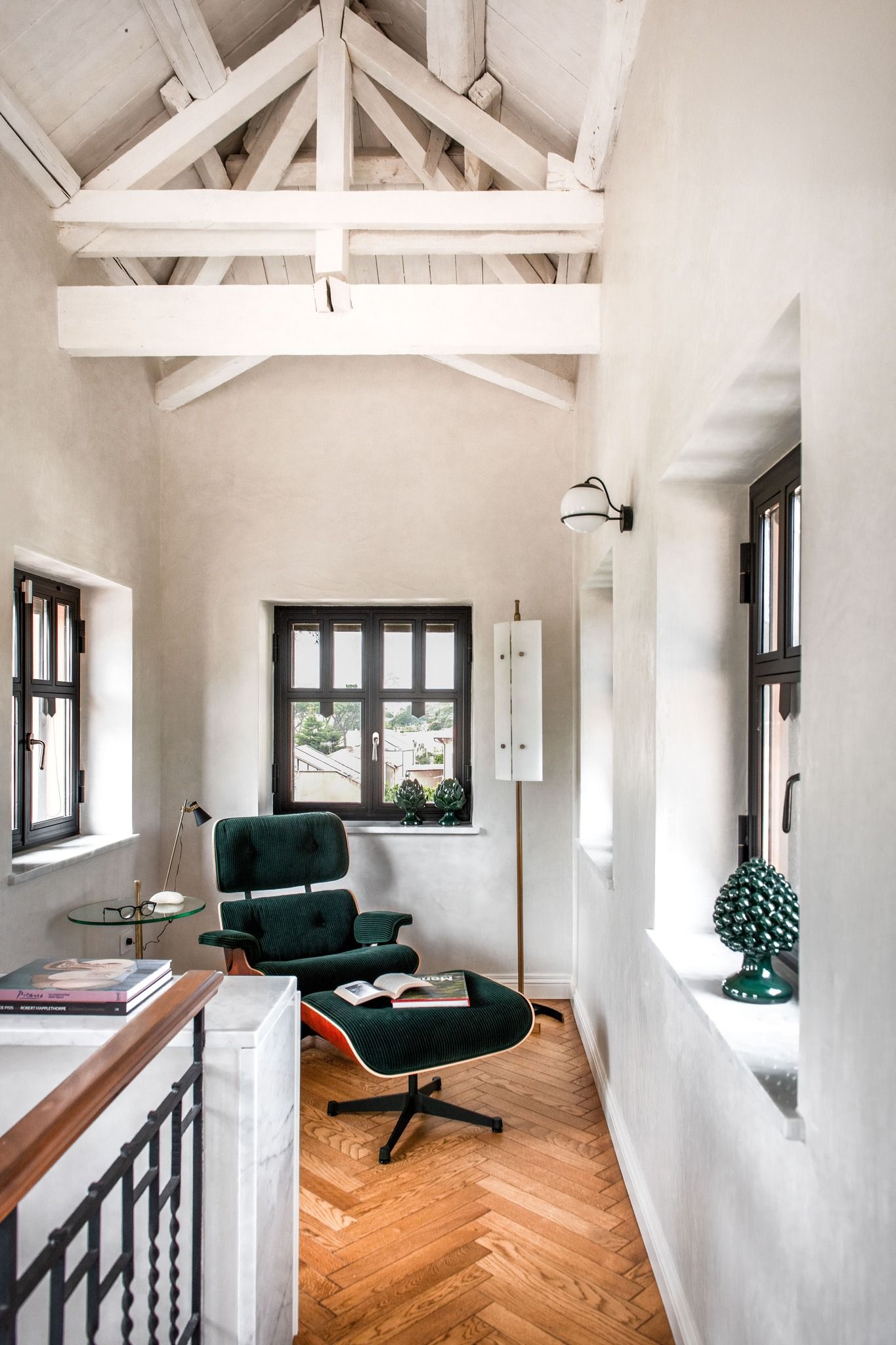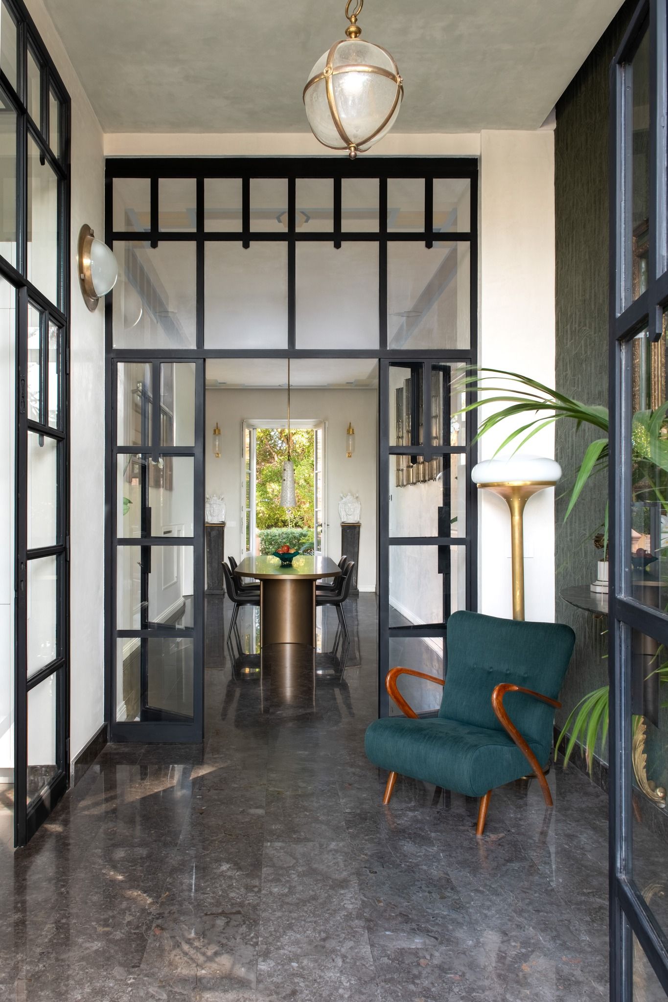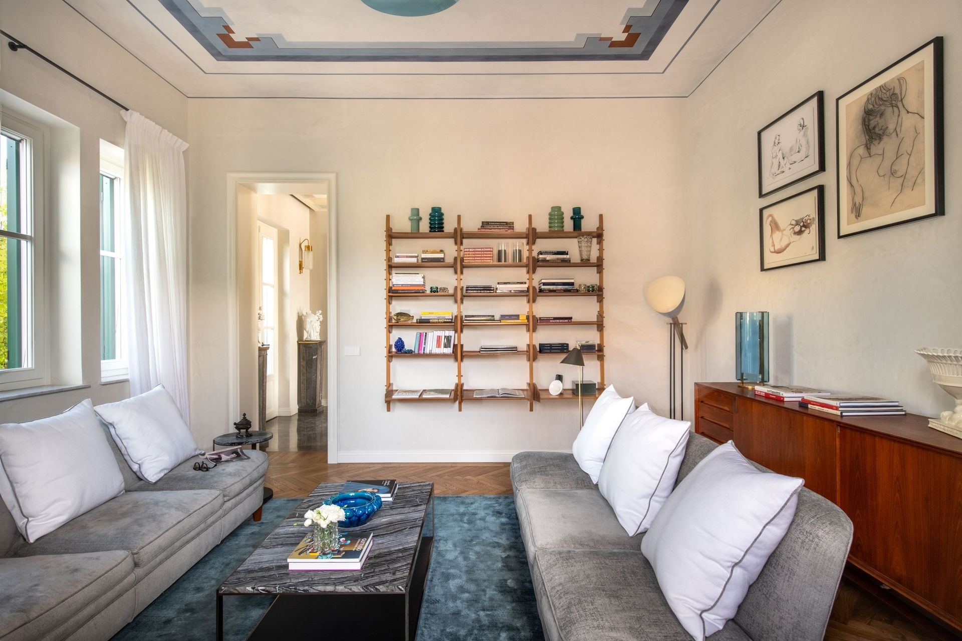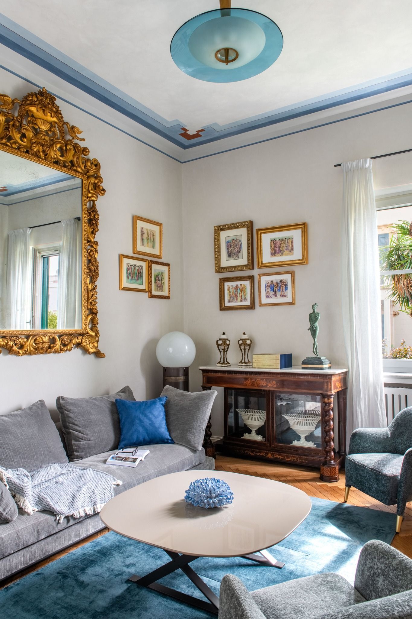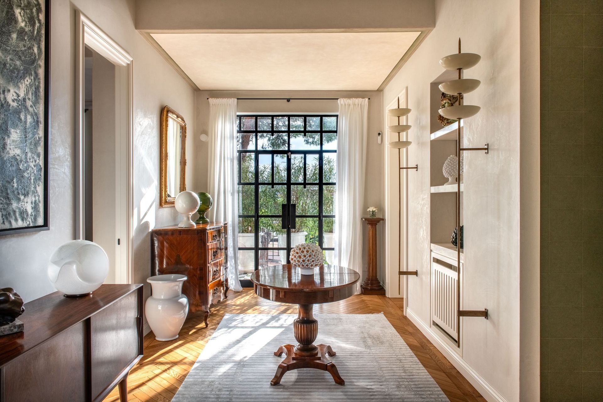 Il proprietario, un attento e colto collezionista, cultore del 900, ha personalmente contribuito alla scelta degli arredi e degli apparati decorativi che completano la casa orientato verso una scelta di arredamento ibrida nella quale convivono pezzi di antiquariato con arredi classici del design contemporaneo.